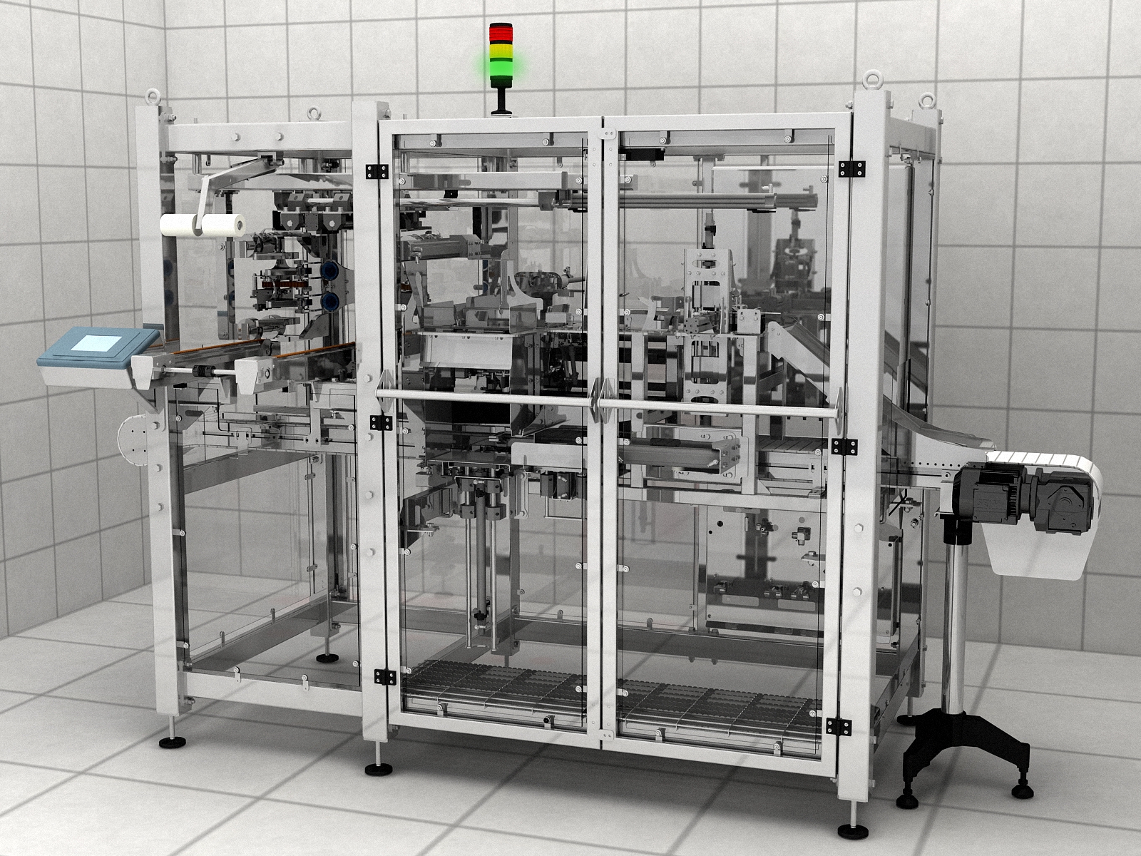 A gép a megakasztótól a behordó pályán érkező celofánba fejjel lefelé csomagolt élesztőkocka csíkokat (5x50g) csoportosítja majd két szintbe rendezi és betolja a gép által előre hajtogatott doboz tetejére. Ezek után ráhajtja a dobozt a termékekre, bezárja a fülét és a becsukott kész dobozt kiadja az elhordó pályára.