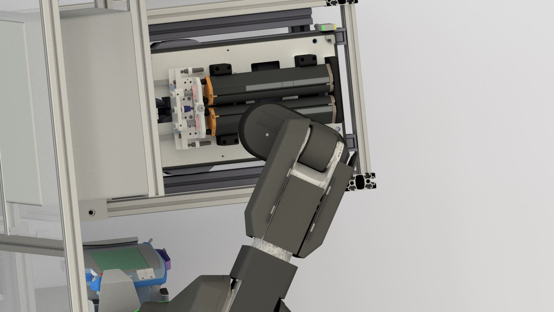 A robot vákuumos megfogó fejjel rendelkezik, ezzel veszi fel a darabokat, melyek nagy méretűek és a tömege kb. 6 kilogramm.